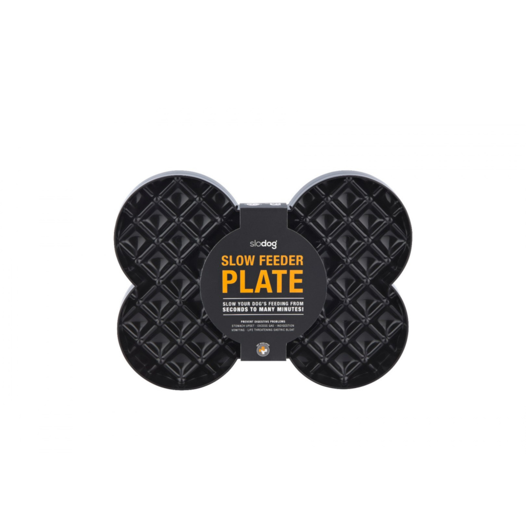 Czarna miska spowalniająca spożywanie pokarmów SloDog. Idealna do rozłożenia jedzenia w płytkich kieszeniach.